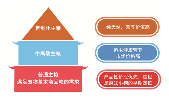 宠物食品行业存在明显的产能结构性过剩的问题,一方面现有的宠物食品和用品市场的产能和供给过剩,另一方面新增的“铲屎官”抱怨没有合适的宠物食品和用品。在存量客户供给过剩以及新增客户需求无法满足的背景下,疯狂小狗将用户人群精准定位于养宠新手,围绕目标群体的需求来构建自己的产品线。